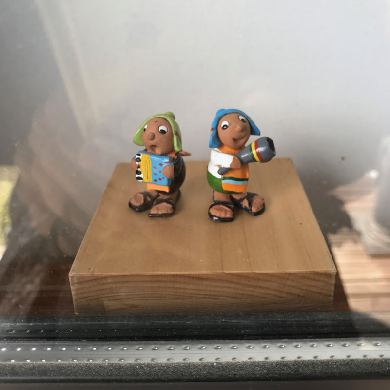 玄関の横にカミさんの音楽教室のガラス窓。少し前からこんな人形がお迎えしてたけど