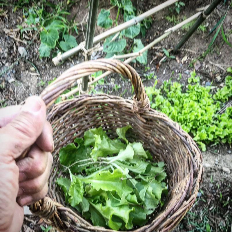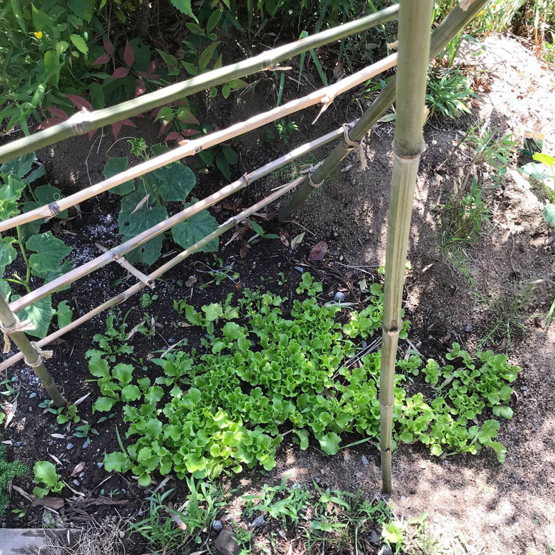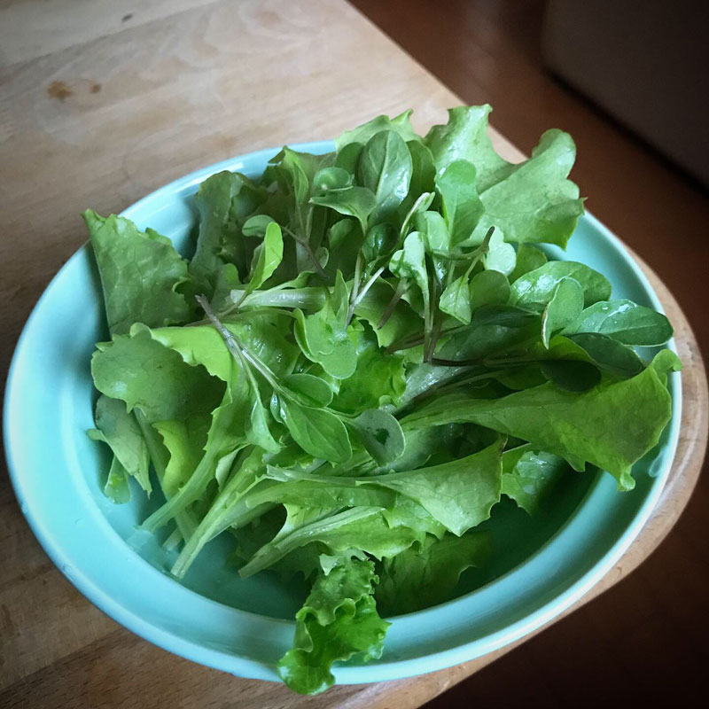 スペースが無いのでわざと多めに蒔いて間引きしながら食べてるサラダ用の葉物。
