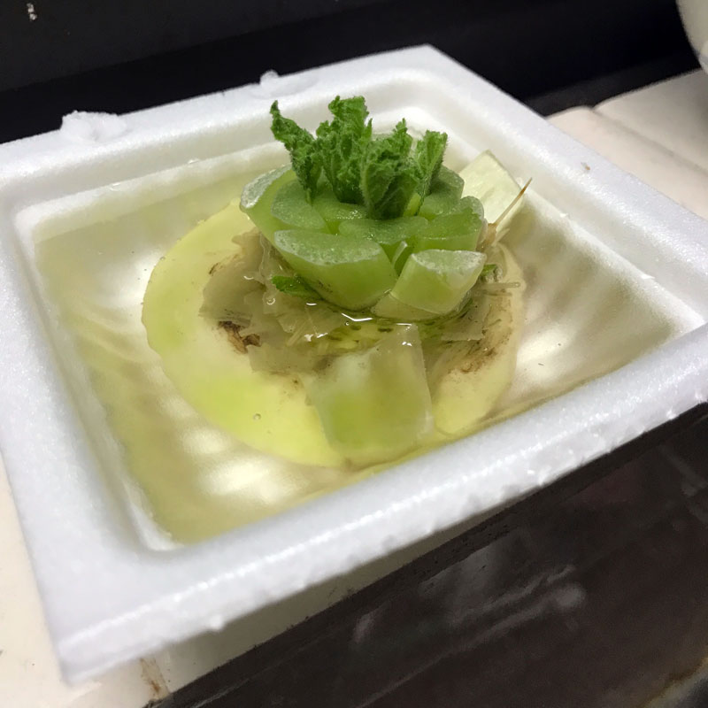 ルッコラはまだ双葉だけど苦味と香りは本来のより強いかも。