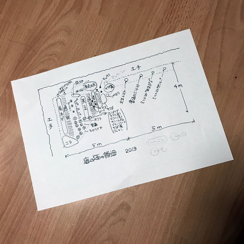 来年へのメモと展開を考えるために#庭の猫の額畑の現状を万年筆でマップに描き起こしたんだけど