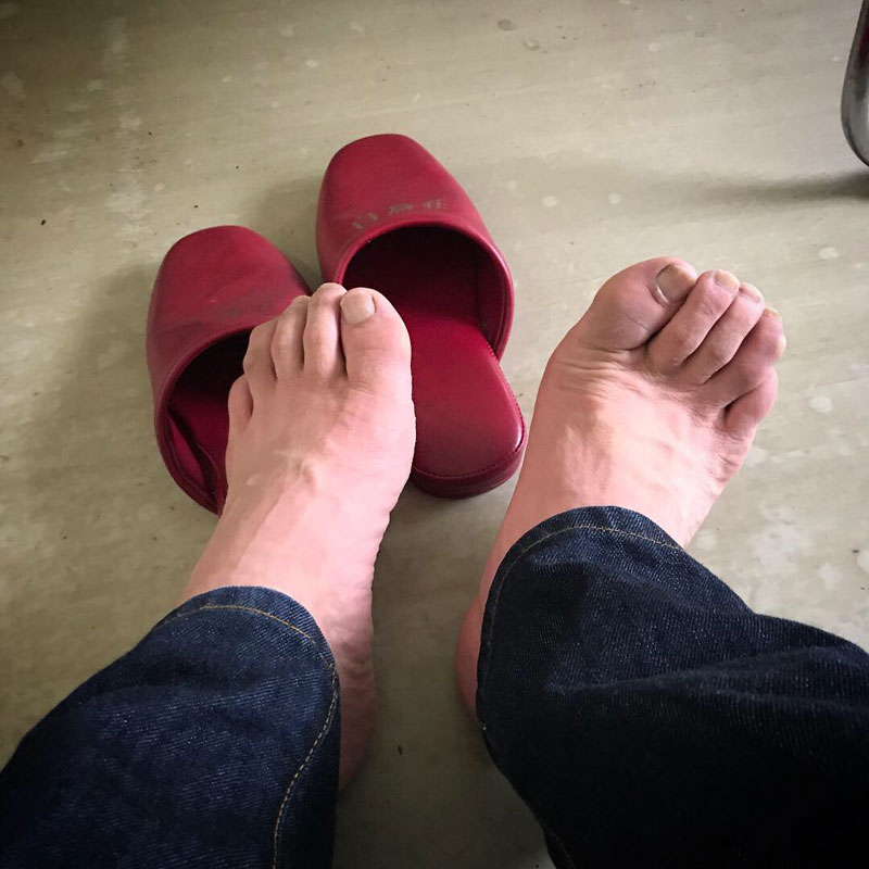 足の指の先まで真っ赤。