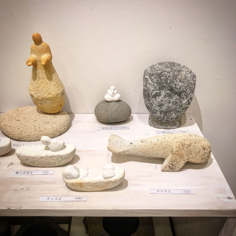 石などを素材とした小さな彫刻。