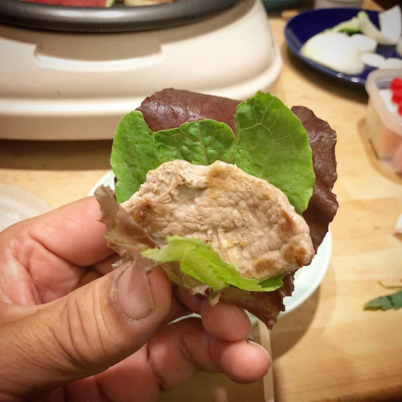肉を包んで食べたりそのままサラダに。美味しすぎ。ありがとう!今日は最初に赤い金麦。