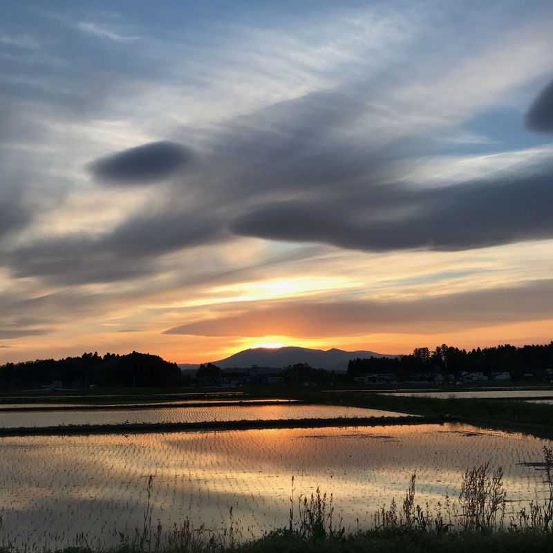 田んぼ撮り カミさんが台所でやってる切り落とし大根とにんじんの水栽培。 にんじんの葉もどんどん伸びる。 良い天気が続く。 蔵王の雪もだいぶ溶けてきた。 雲は見飽きない。 彩雲。(ただの光に写ってしまった。明るい部分と周辺が虹色だったんだけど) 環水平アーク 空が焼けて来た。 田んぼの水に写って夕焼けが倍に。 うっとり。今だけの楽しみ。 ただ今、夕焼け撮影中。 毎日、寄り道して空の写真を撮って家に帰るのが遅くなる。 うっとり。 2019年5月9日 | コメントはまだありません | カテゴリー: 自然