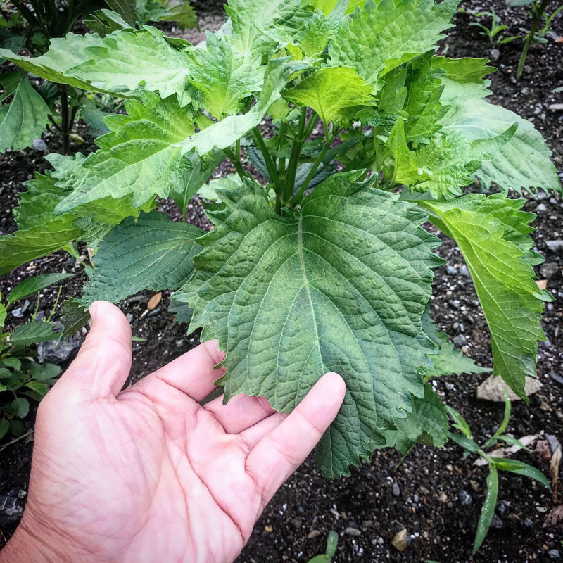 やけに葉が大きく育ってる大葉。