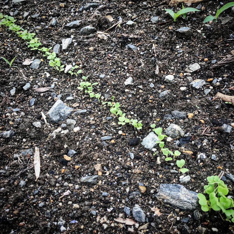 もう満員電車並みにぎゅうぎゅうでスペース無いけど無理無理、二十日大根の種撒いた。