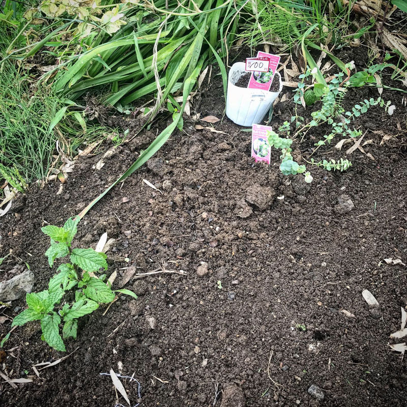 ハーブのエリア。スペアミントとオレガノ。