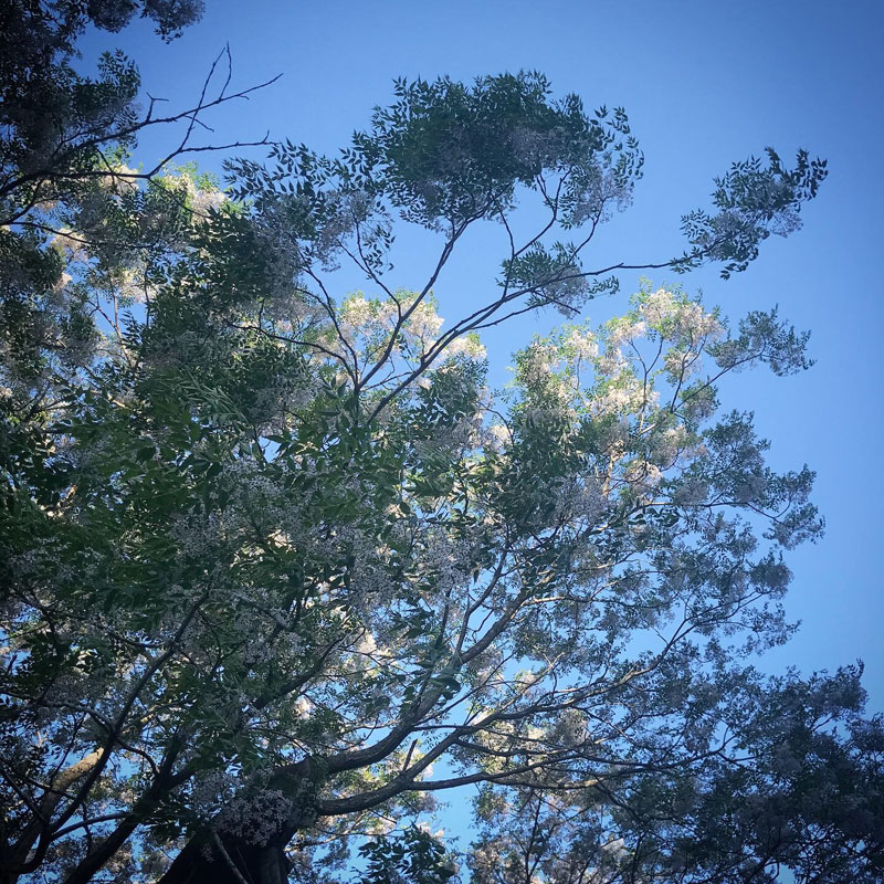 今日も仕事上がりに帰り道の途中にあるせんだんの巨木に会っていく。推定樹齢130年。