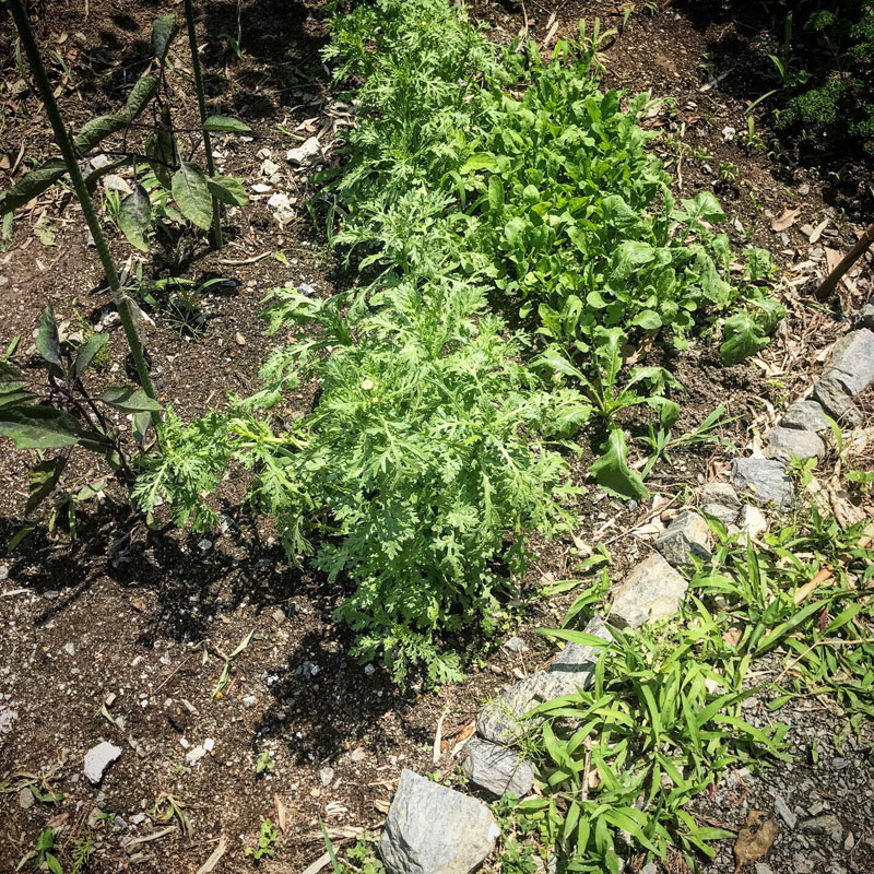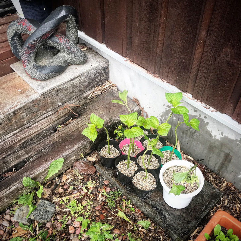他の草に勝って土手を覆い尽くしてほしくて植えたヒメイワダレソウ。いい感じに広がり始めた。