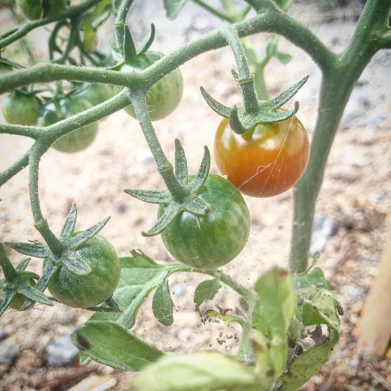 先頭切って赤くなり始めたミニトマトがひとつ。