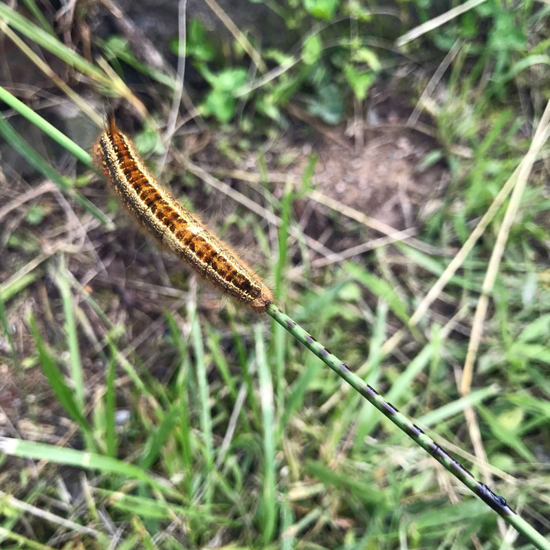 仕事場の毛虫と彼が茎につけたまだら模様。