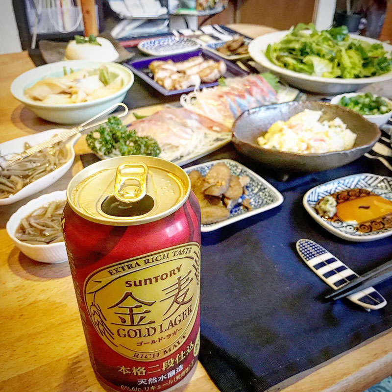 そして赤い金麦。幸せな酔いだ、宵だ。