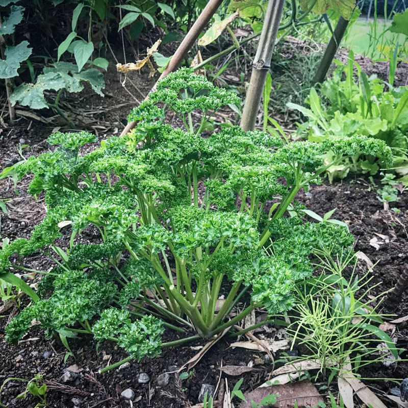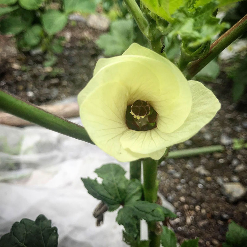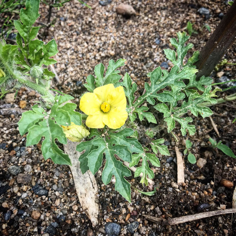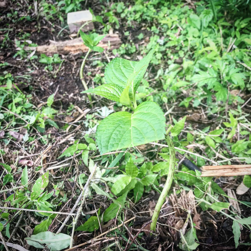 ピーマンに似た葉のもの。これもこぼれ種からか、もしかしたら姪っ子にもらったスペインのパプリカがひとつ生き残っていたのか?