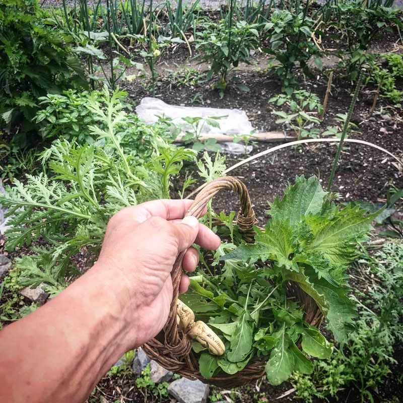 春菊の天ぷら食べたくて、畑から摘んでカミさんに作ってもらう。