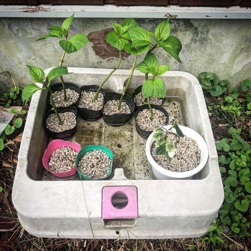 水の管理が大変なのと晴れるとしおれてしまうので今日から雨の日が続くタイミングで土手に直接挿してしまう。