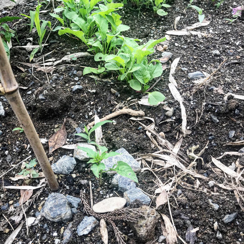 ルッコラと混在してるカブがもうすぐ食べられそうな大きさになってきた。
