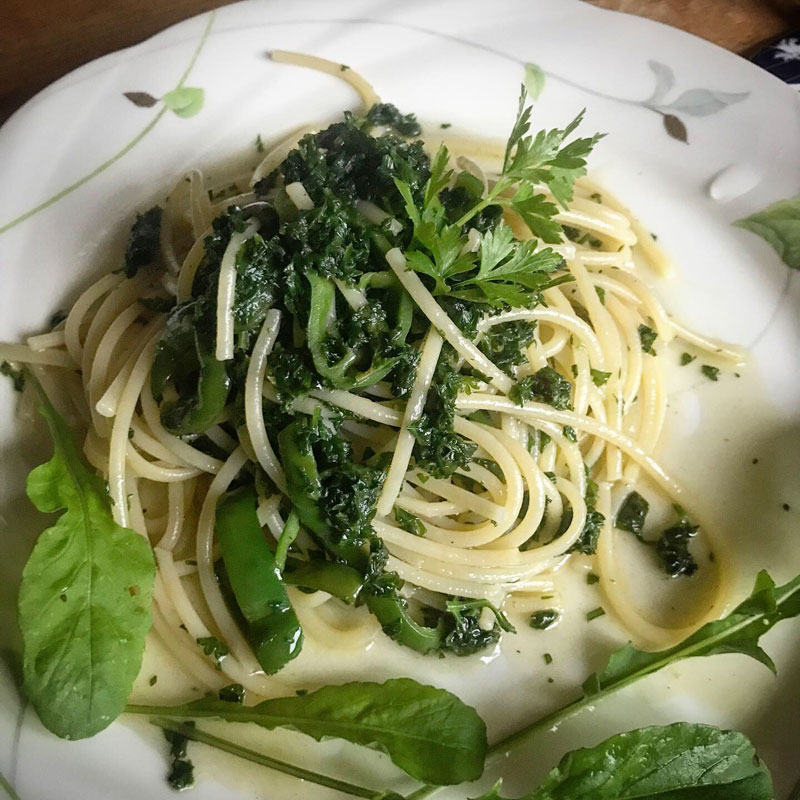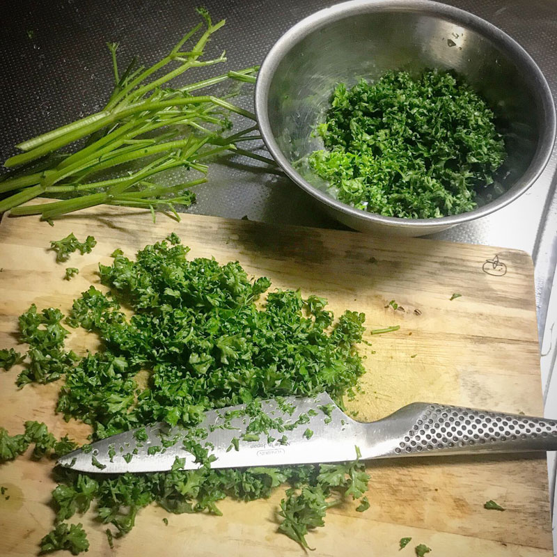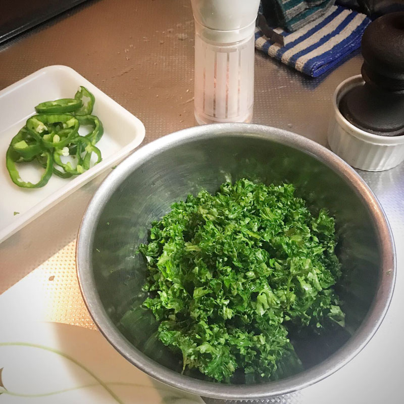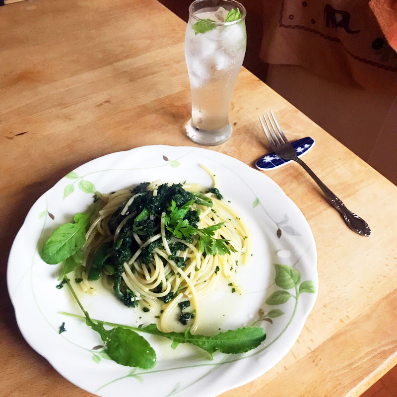 ワインでも飲みながら食べたいところだけど、この後地元の会議。スペアミント摘んできて炭酸水に入れてレモンをひとたらし。