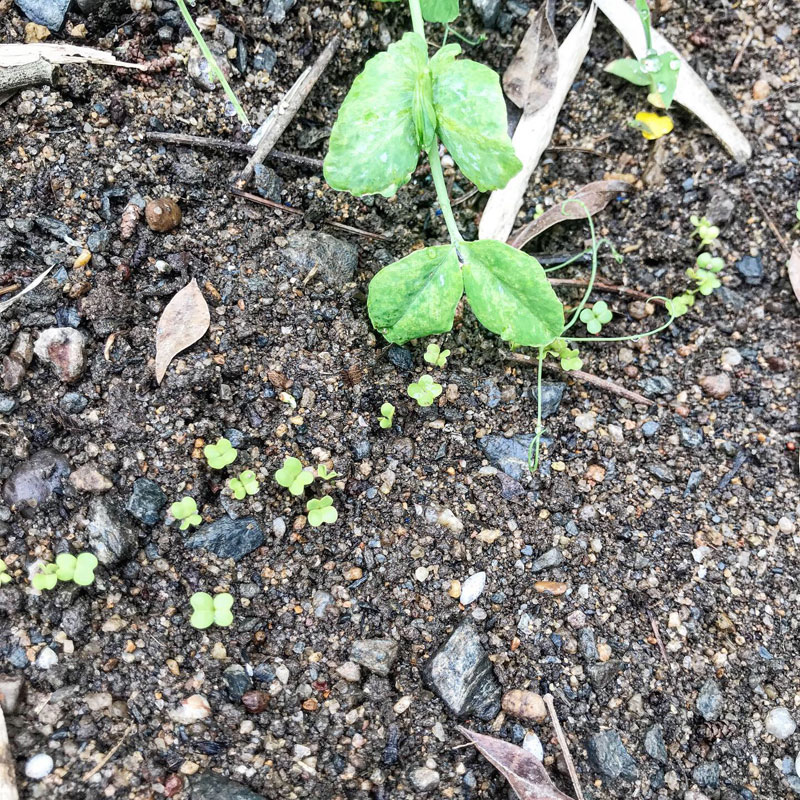 カブの発芽。少し前に蒔いたのは全部、虫に食われた。パオパオでもかけておいた方がいいか?