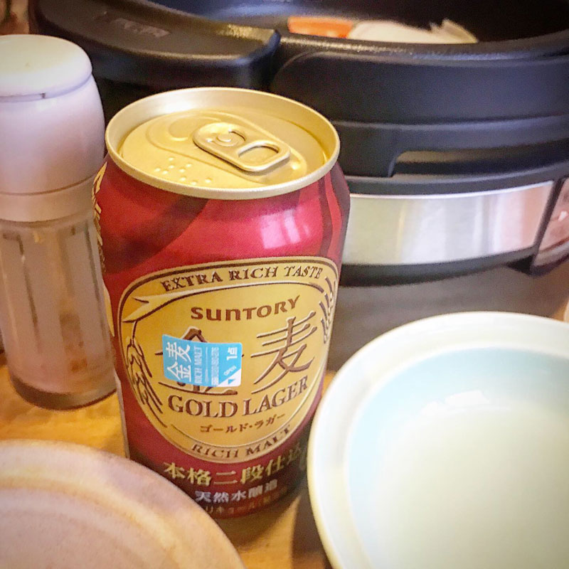 いつもの赤い金麦で。