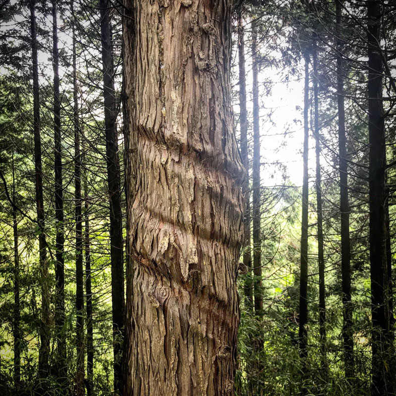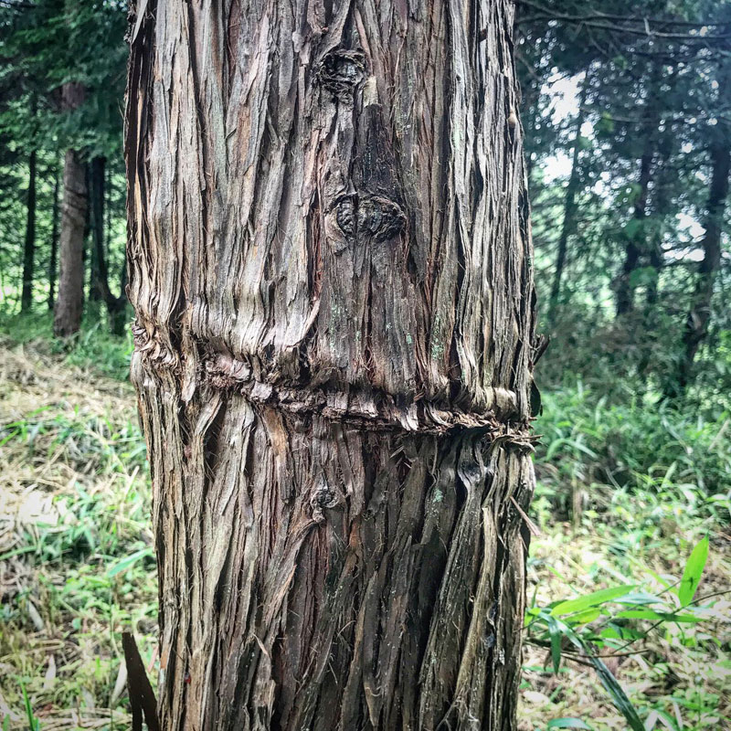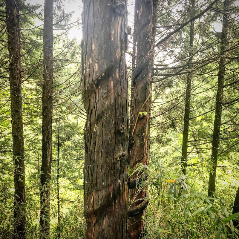 仕事場の杉の木に葛の蔓が絡みついて巻き付いていた。