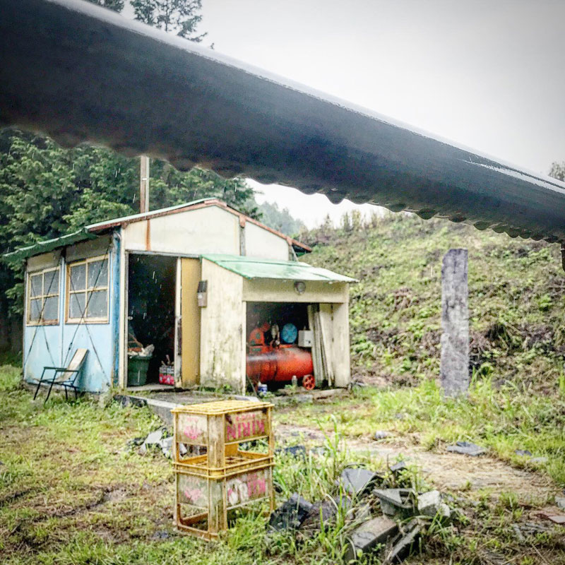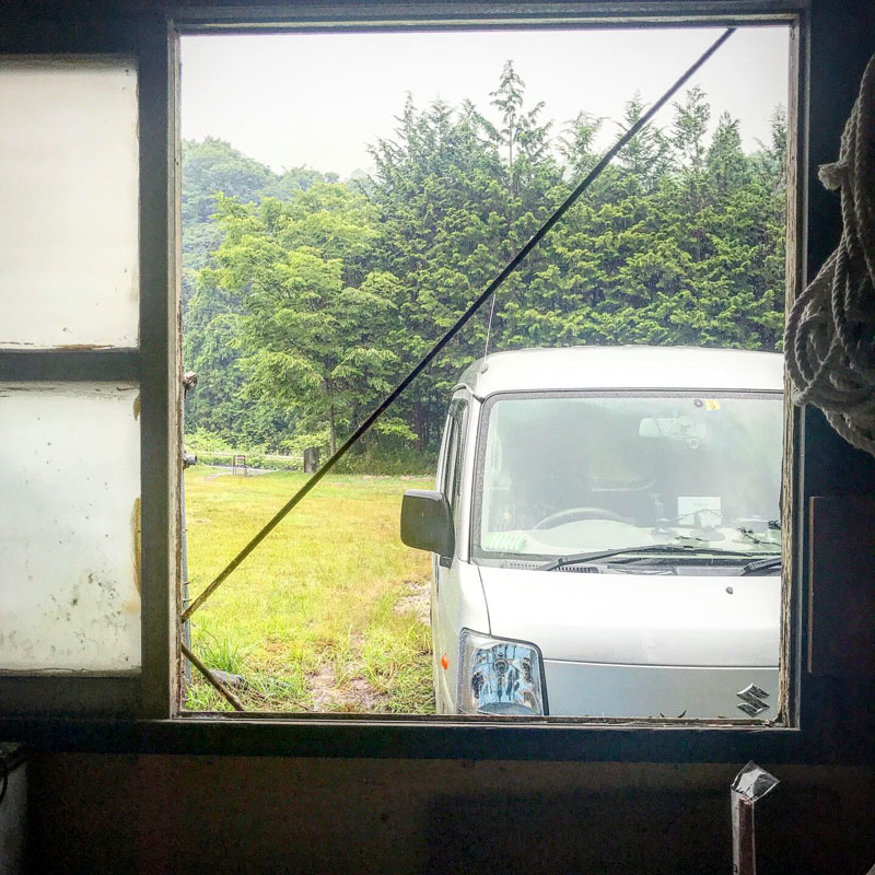 雨の仕事場を