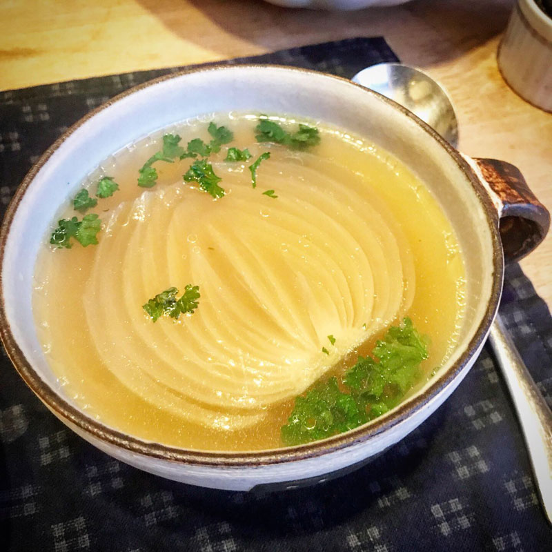 淡路島の玉ねぎの丸ごとスープがとろりと甘い。