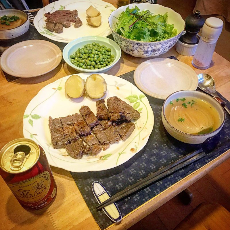焼肉名人のカミさんが焼くと安い肉でもご馳走に。んまー! #居酒屋我家