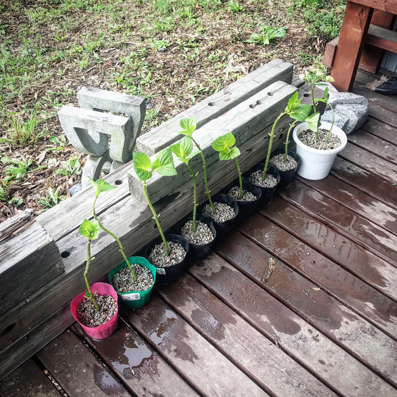 初体験の紫陽花の挿し木。うまくいきますように。