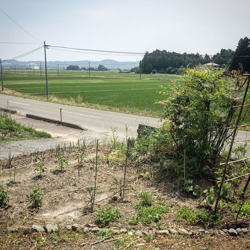 畑の境を木切れで適当にやってたのを縁石にした。