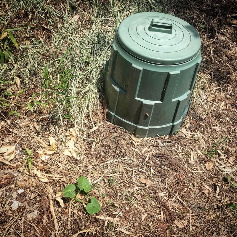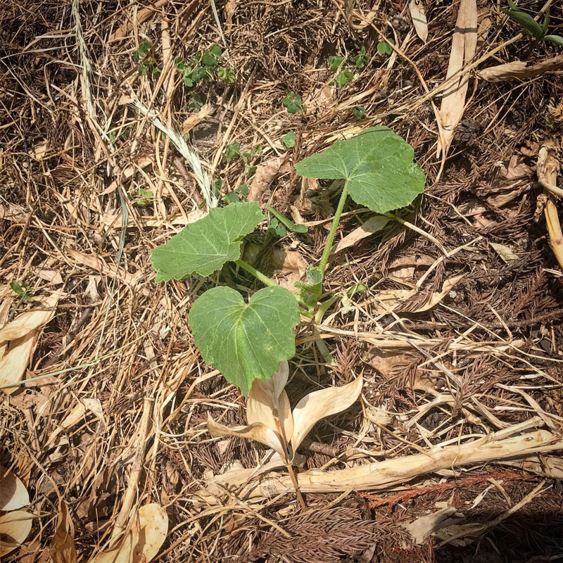 コンポストの近くにかぼちゃ。こぼれた種から発芽したんだろう。