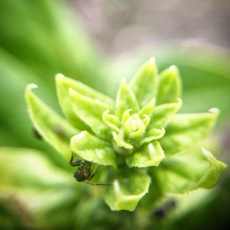 花を見たくてとっておいたほうれん草。花があんまり小さいので高校のサッカー部の友人、原くんにもらったクリップレンズをiPhoneに付けて撮ってみた。雄花。