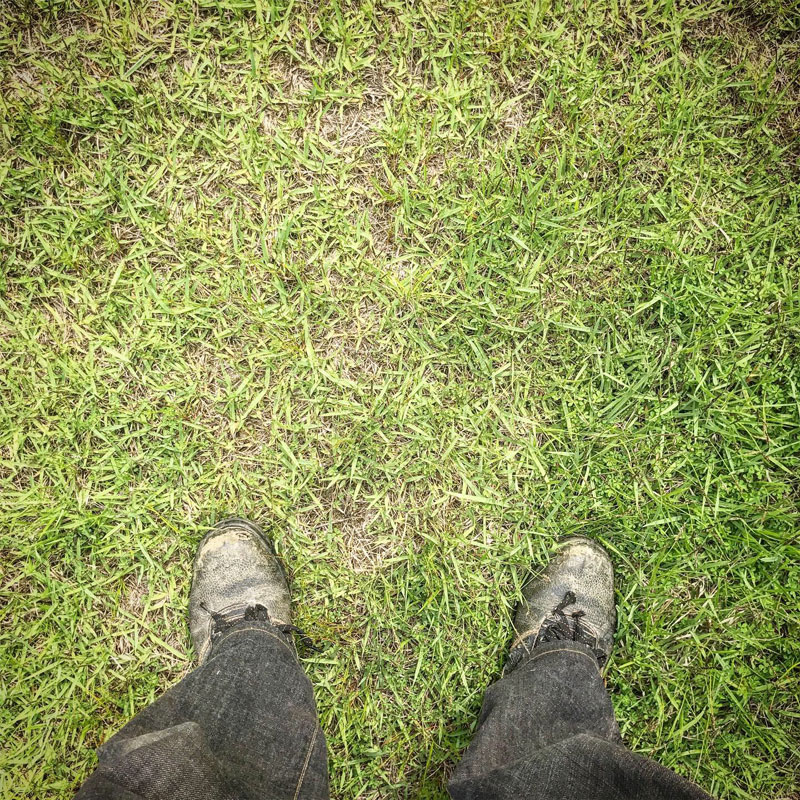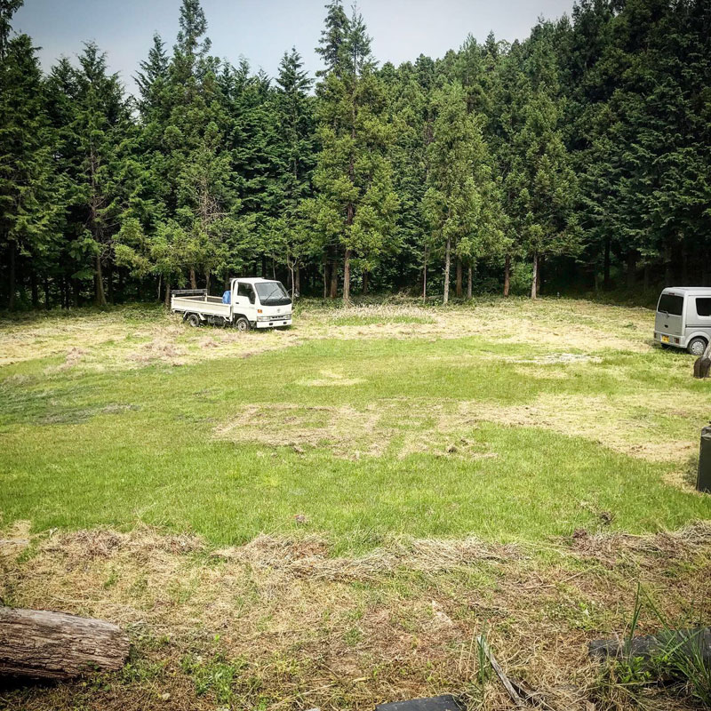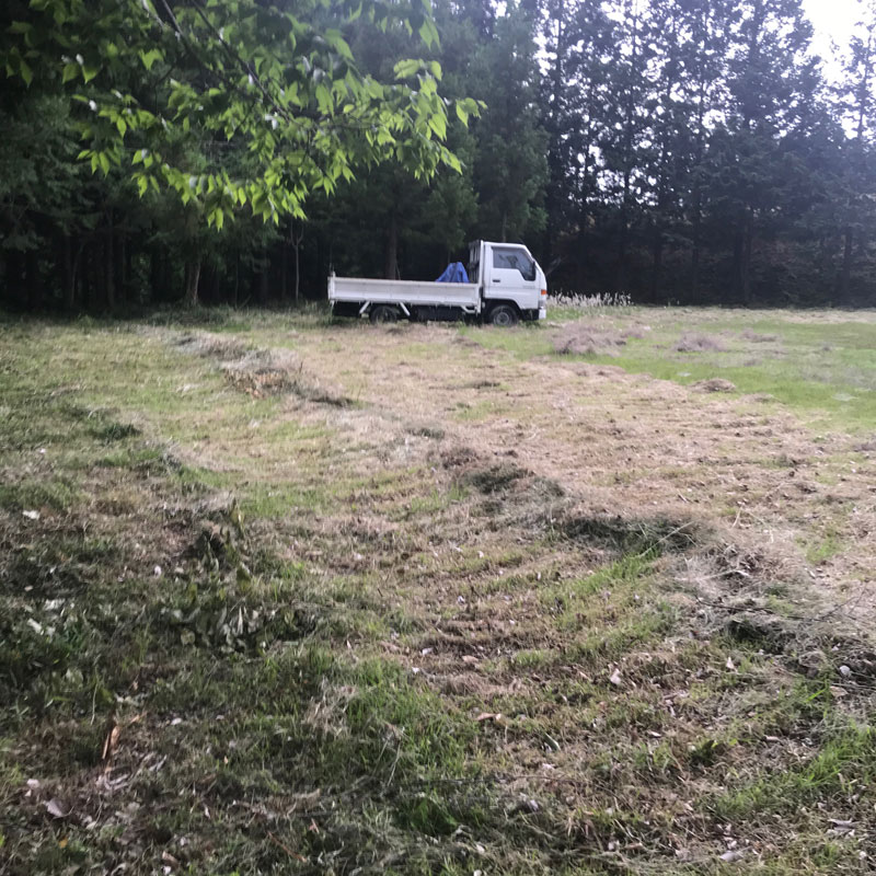までに(ていねいに)仕事場の草刈り続けてたら今では勝手に生えてきた野芝できれいに覆われてる。目に気持ちが良い。