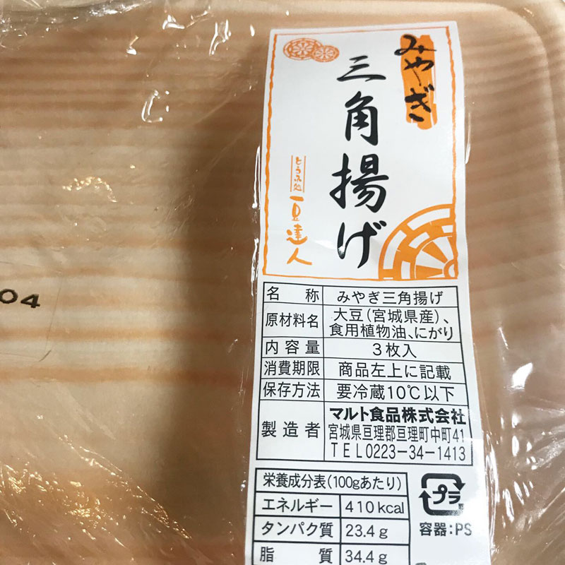 お揚げをカリカリに焼いてわさび醤油で食べるのは定番つまみのひとつだけど、マルト食品の宮城三角揚げに出会ってから浮気しないでこれ一点買い。外、カリカリ、中しっとりの感じがこれより美味しいの見つからない。んまー。