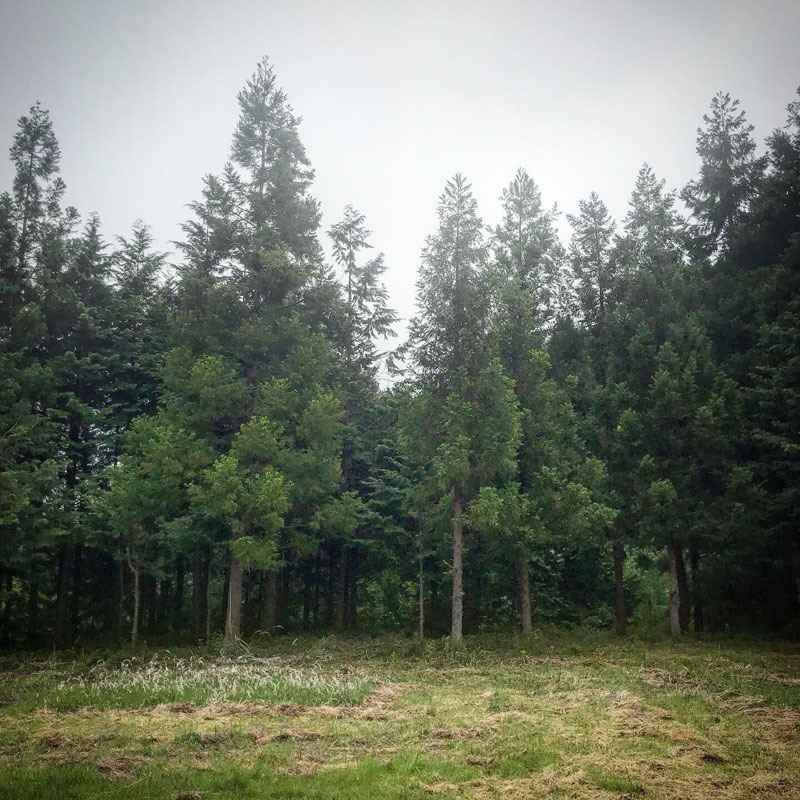 穂が揺れるのを楽しみにわざと刈り残したユニック車横の草も雨に濡れて、揺れない。