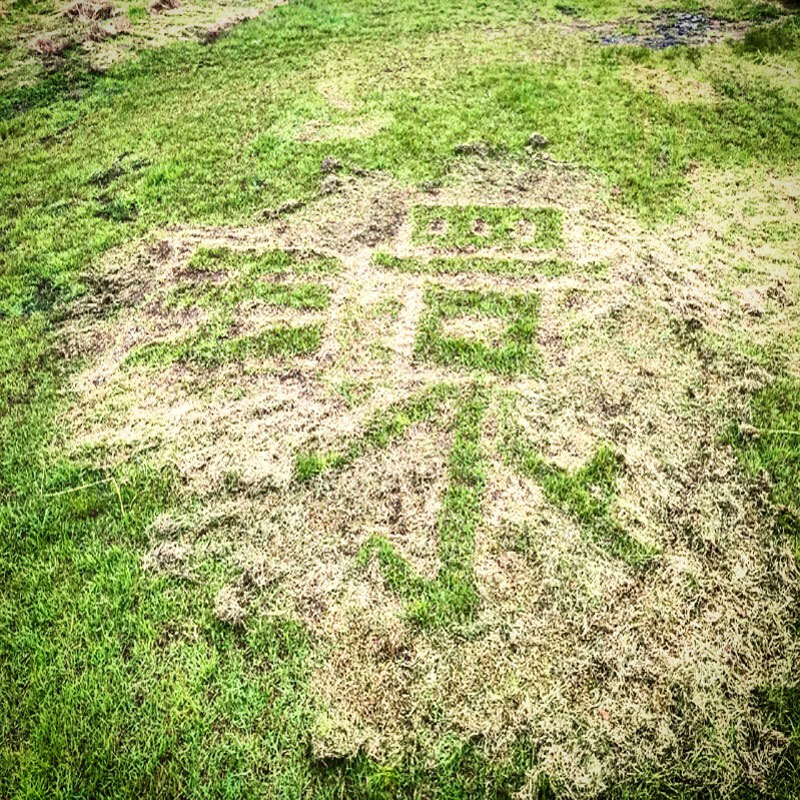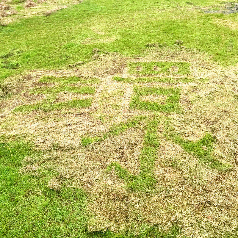 草刈りした時、名前の漢字一文字を刈り残しておいた。刈った草が枯れて字が見やすくなった。