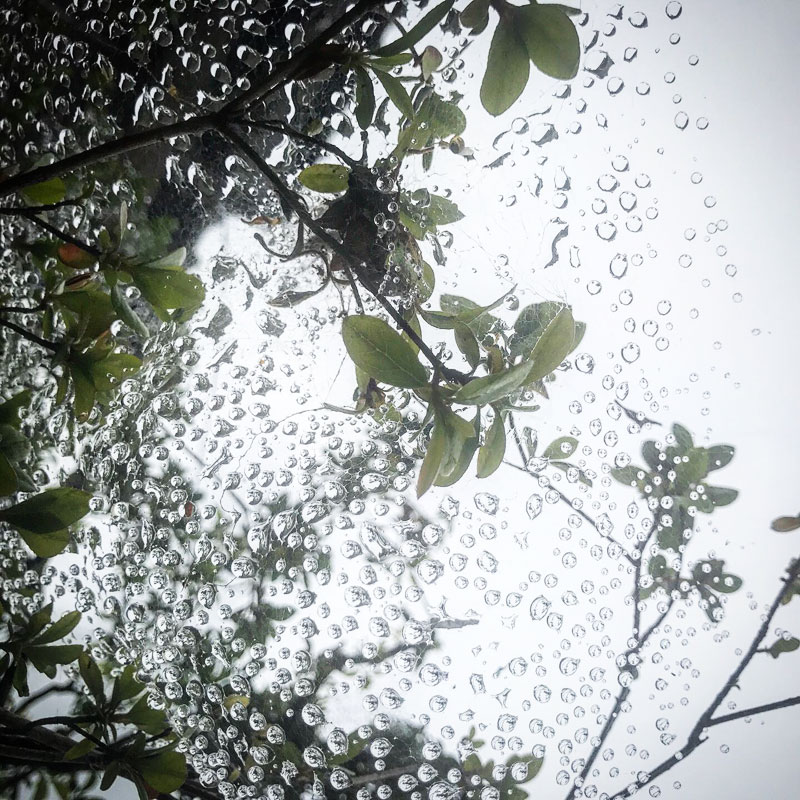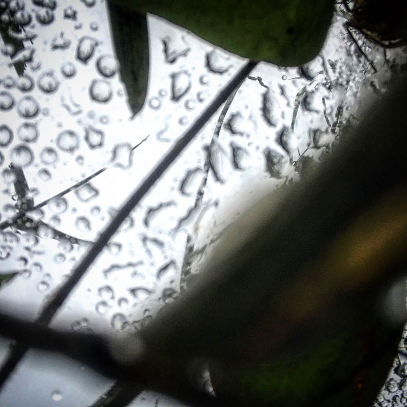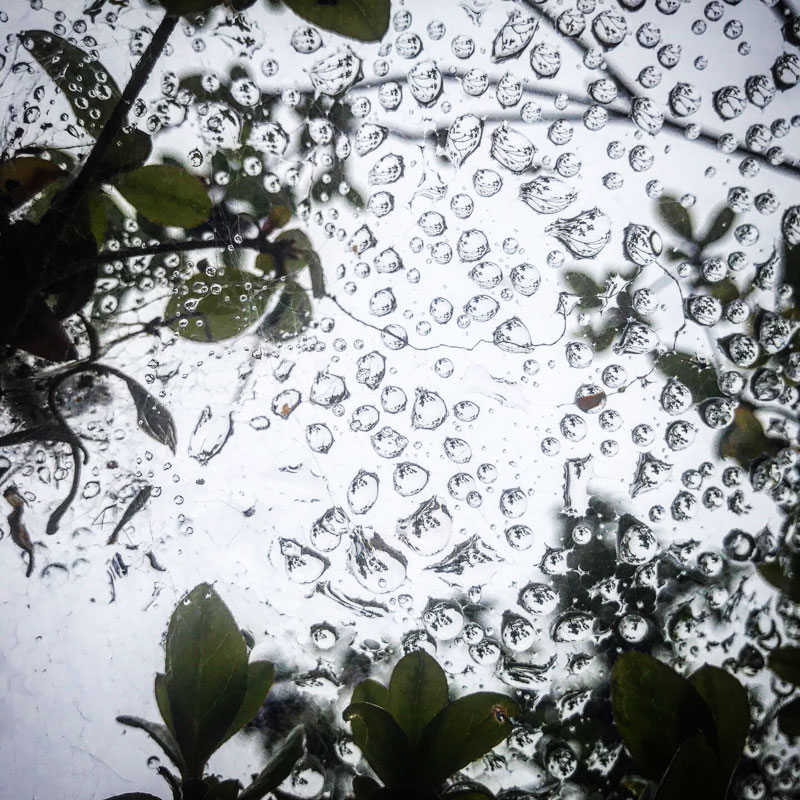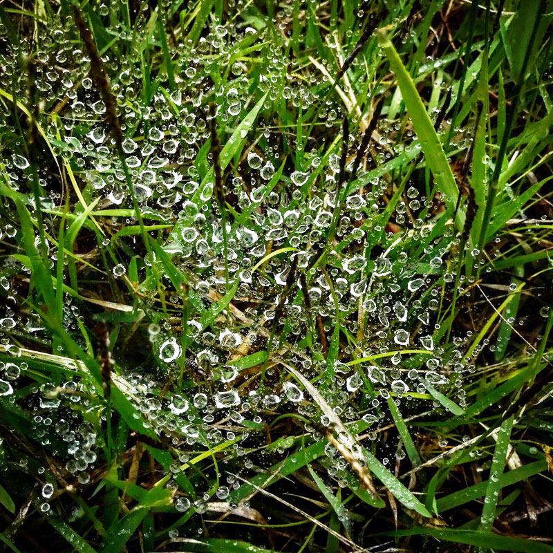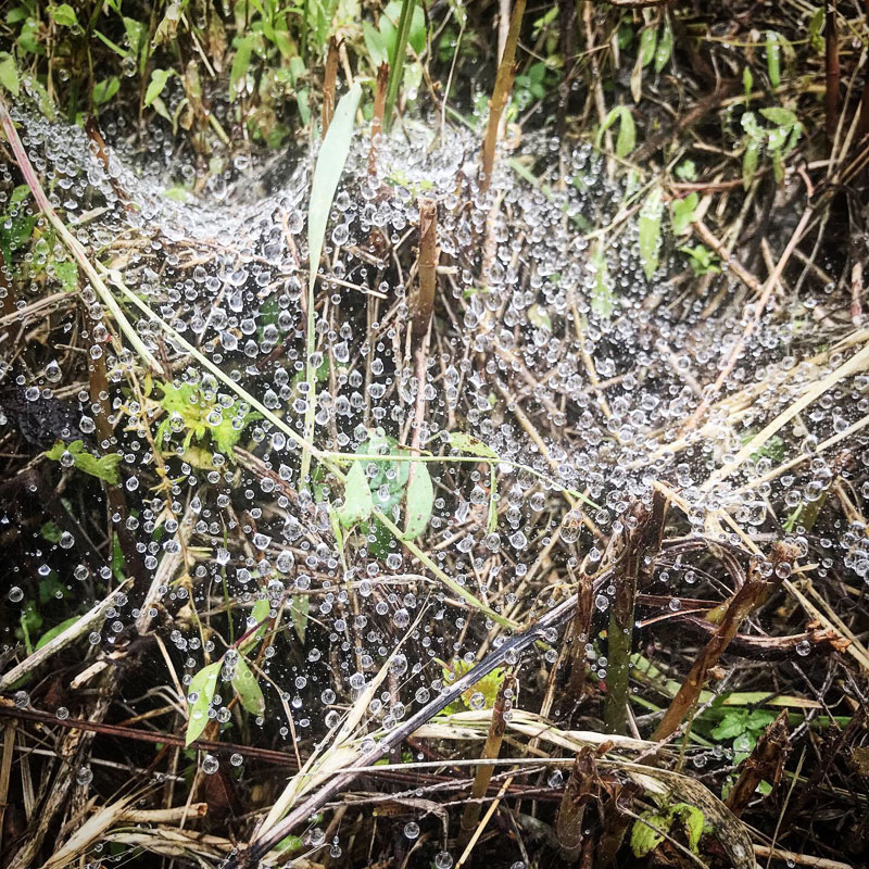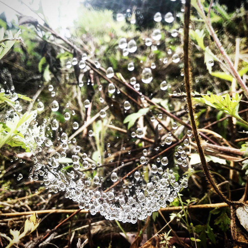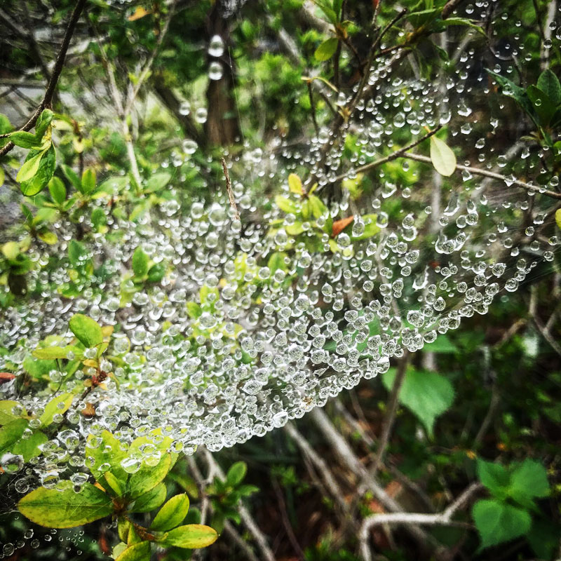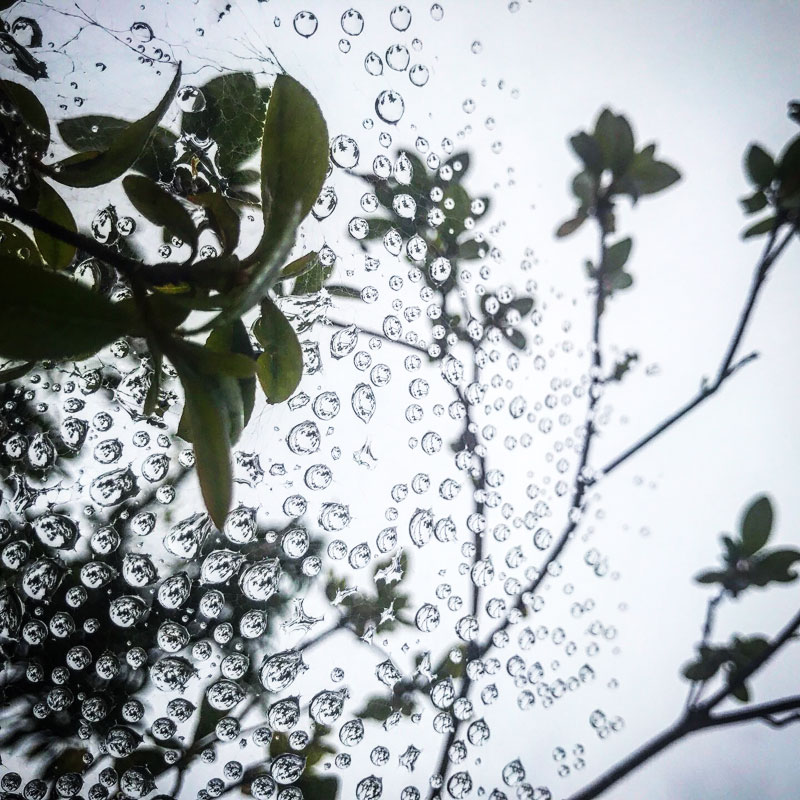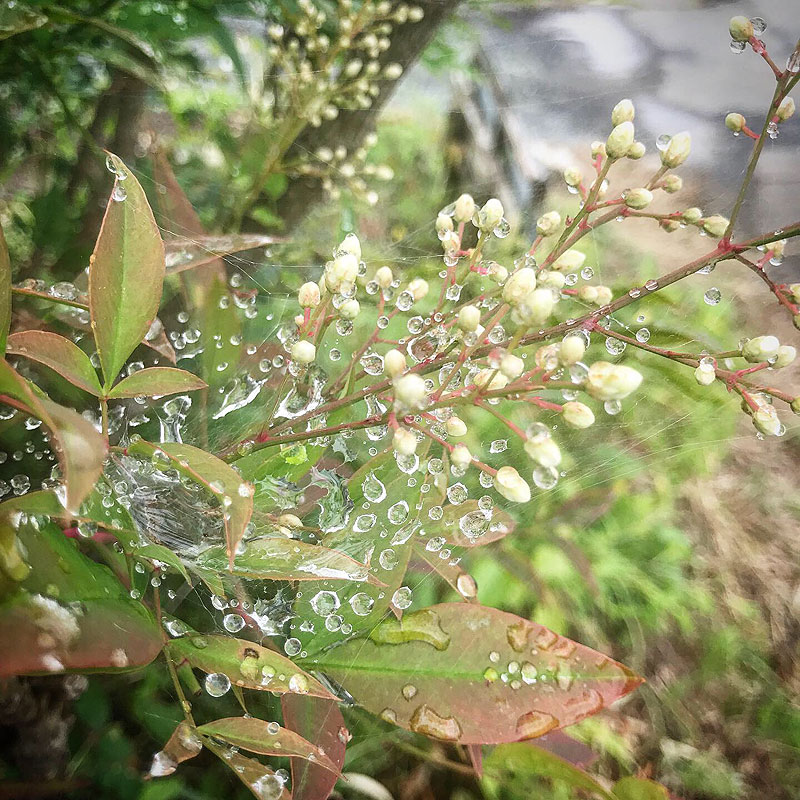 蜘蛛の巣は雨水でいっぱい。