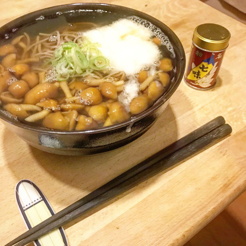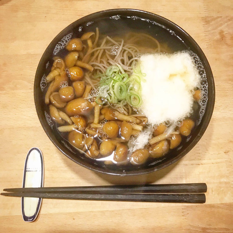 月曜日は麺曜日。カミさんの帰宅時間に合わせて なめことろろ蕎麦、作った。