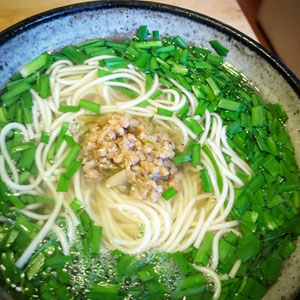 ニラたっぷり温麺 肉味噌乗せ
