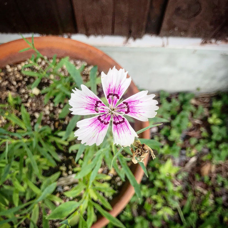 太陽が出なくて全然大きくならないモロヘイヤ。とうとう枯れて黄色くなった葉が現れたよ。ここから挽回しておくれ。