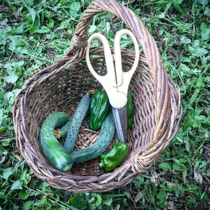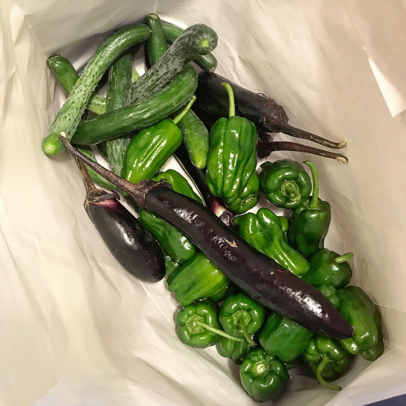若いきゅうりとピーマン、少しだけど友だちにあげよう。
