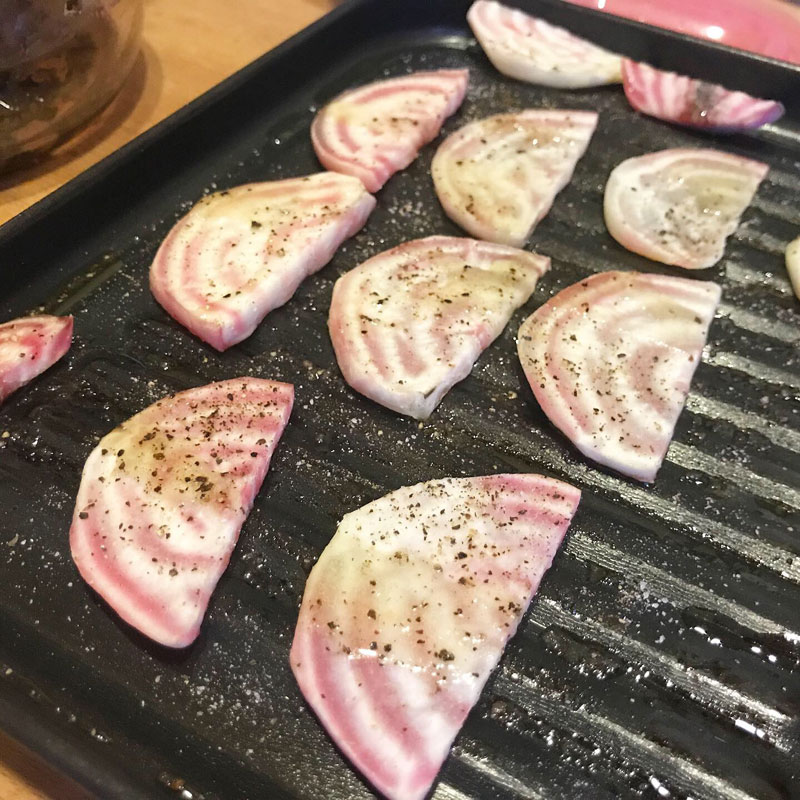 夕食には先日、レストラン・ラ・ナチュールの吉田シェフにいただいた白いビーツをグリルで。とうもろこしの味がする。不思議。