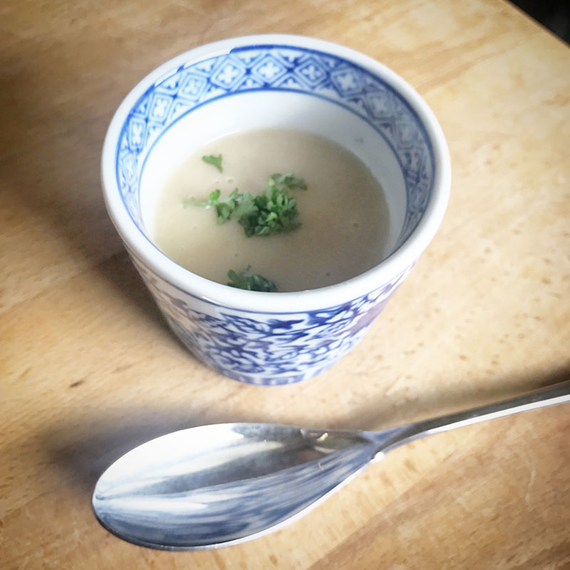 昨日作った新じゃがと新玉ねぎの冷製スープ。一晩冷蔵庫で冷やしたので食べてみた。ちょっと濃厚過ぎたかな。やっぱり牛乳と合わせないと美味しくならないかな。我が家は牛乳やめてるから豆乳でも混ぜてみようか。