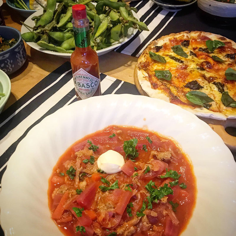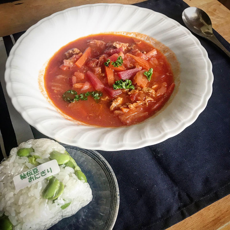 居酒屋我家、開店。昨日カミさんと3ヶ月遅れの誕生日ディナーで出かけた地元のレストラン・ラ・ナチュールでシェフの @naturu2010 さんにいただいたビーツで作ったボルシチ。