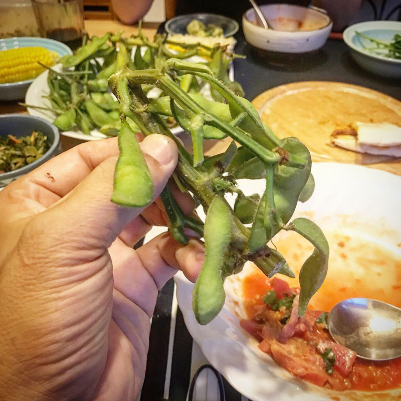 畑のきゅうりがどんどん採れだした。 @ai.r_yabu さんに教えてもらったレシピで紫蘇の葉、ごま油、塩、シラス和え。もうひとつはコチュジャンと合わせて。