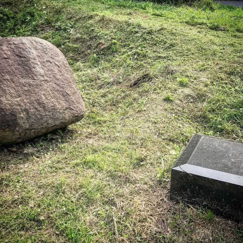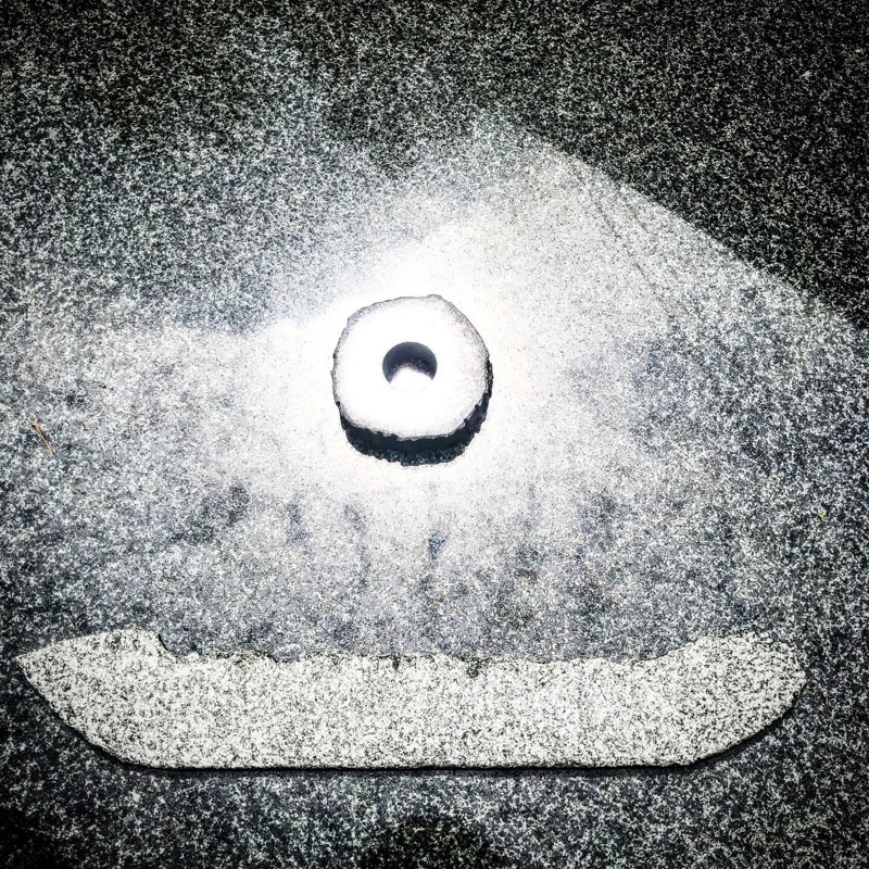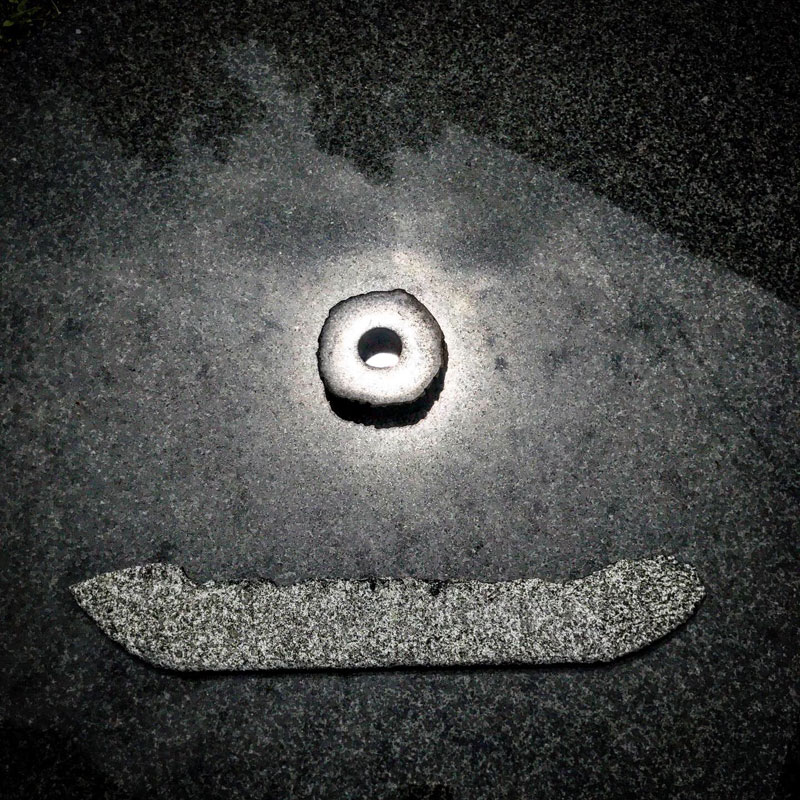 丸い黒御影石を太陽に見立てて