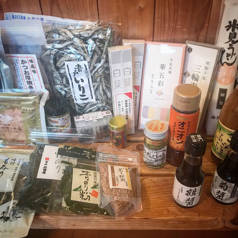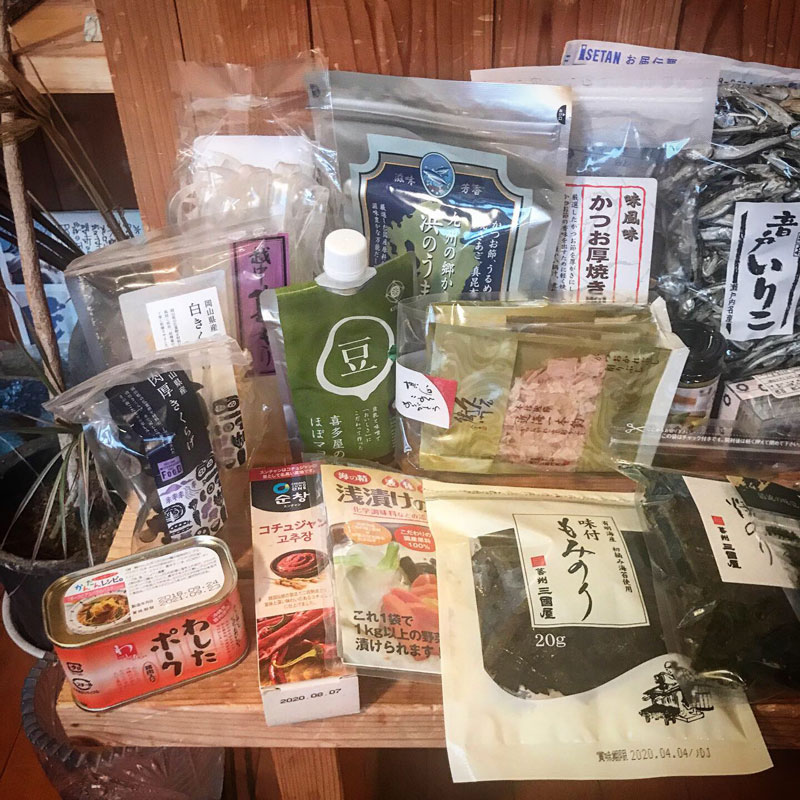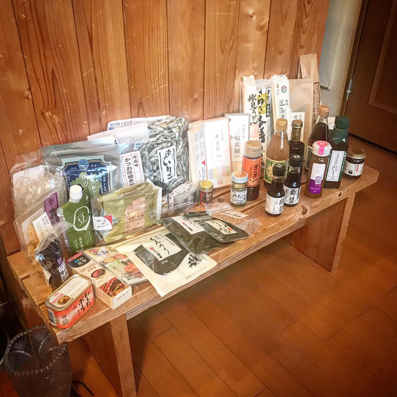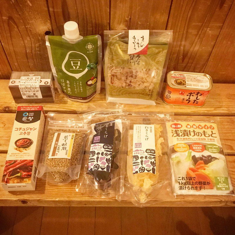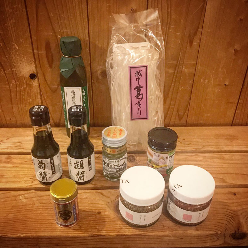 葛きりや白と黒のきくらげ、いろんな醤油や調味料、