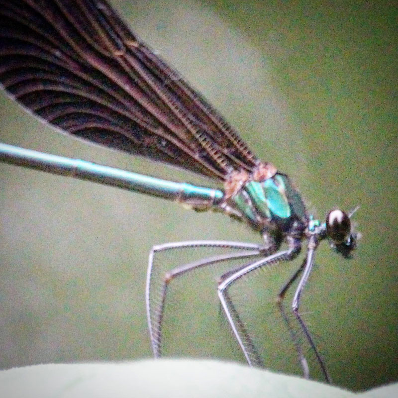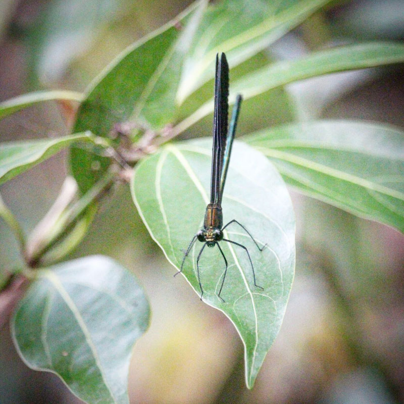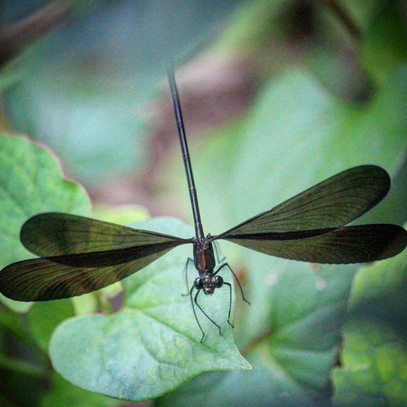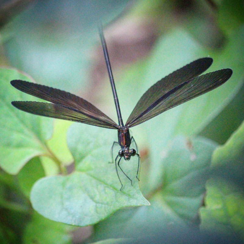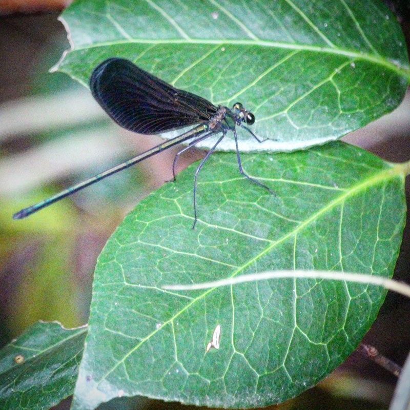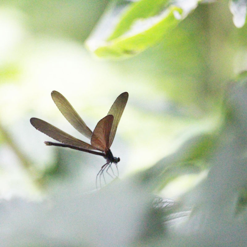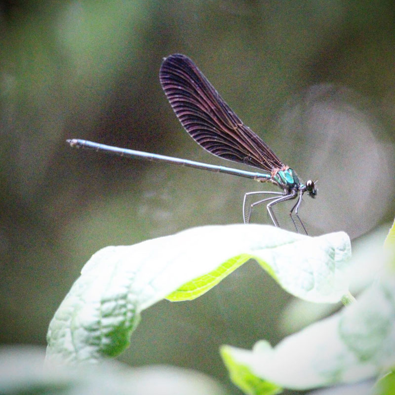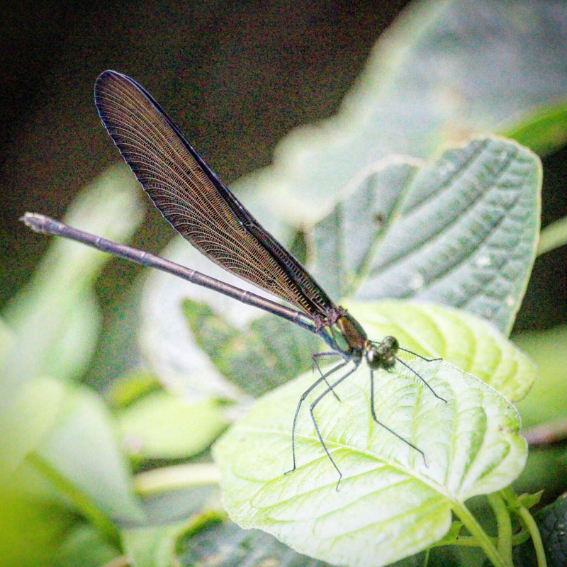 ハグロトンボとは違って彼らは止まっている時は羽根を開いてる。