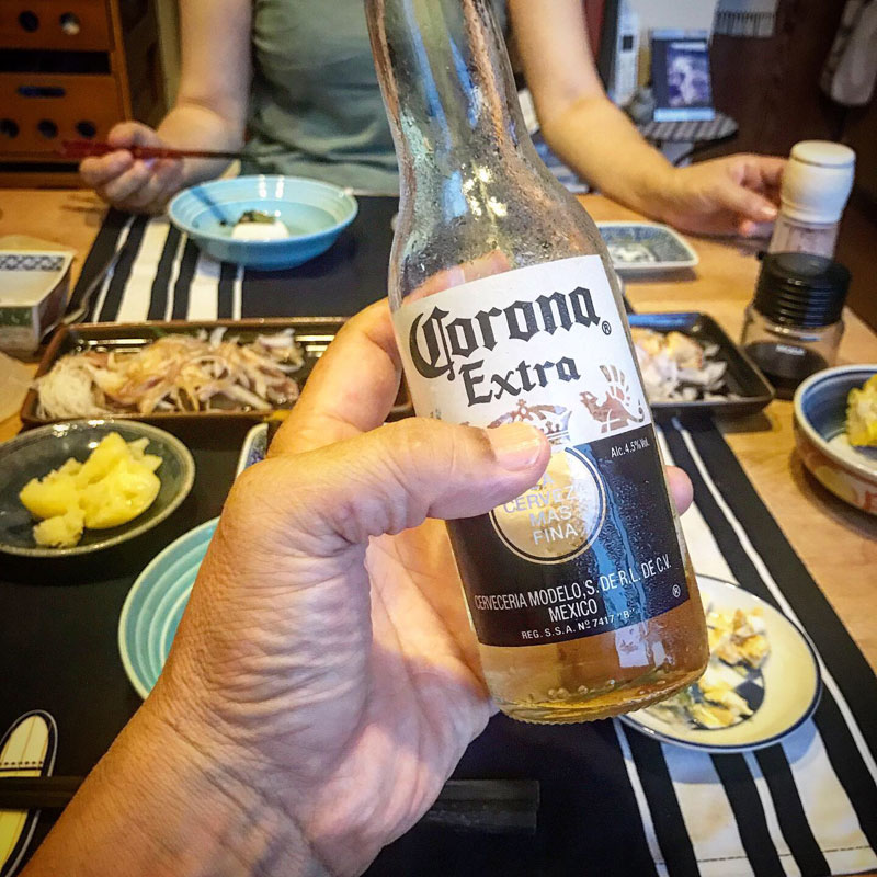 今日みたいな暑い熱い日にはコロナビール、うまいねー。