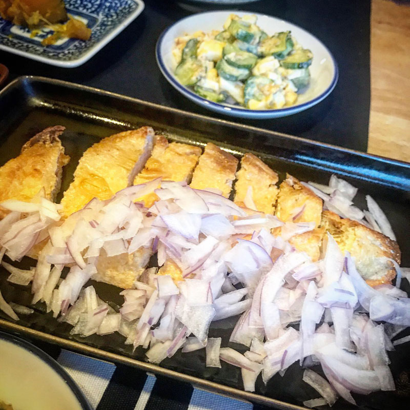 我が家の定番、三角揚げのカリカリ焼き、付け合わせを長ネギじゃ無くて玉ねぎにしてみた。そしてわさび醤油。僕が八王子ラーメン好きだからじゃ無いはず。これ美味い。(僕の両親の住む八王子のラーメンは玉ねぎのみじん切りが乗ってるのが特徴。これが美味い!)