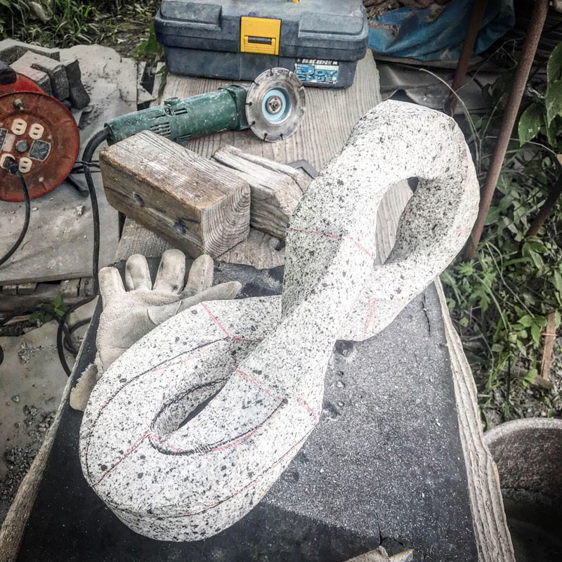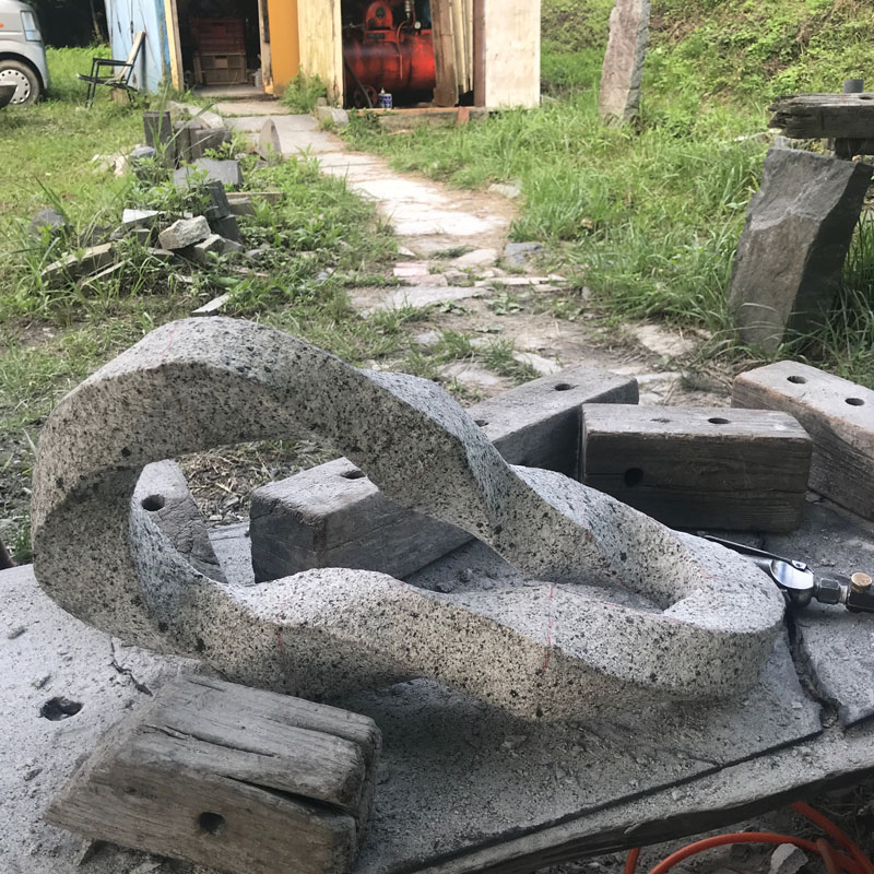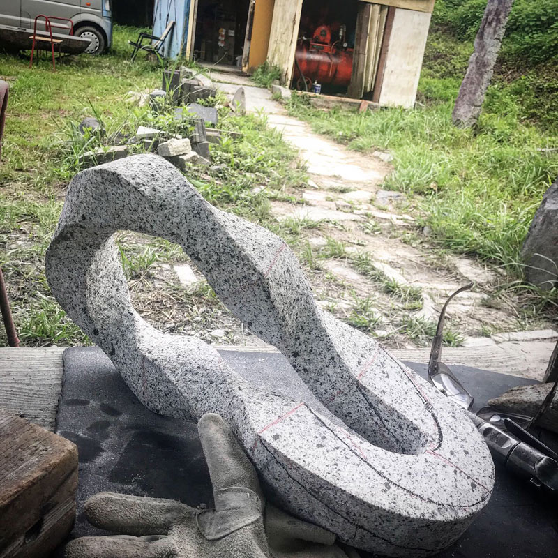 久しぶりに太陽の元での石彫り!